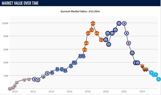 卢卡库曾在着力曼联和国米时身价达到1亿欧,其时他辞别是25岁和28岁。切尔西在2021年曾为他支付1.13亿欧,然而买入之后只用了一个赛季,背面接连租赁国米和罗马并最终卖给那不勒斯。
