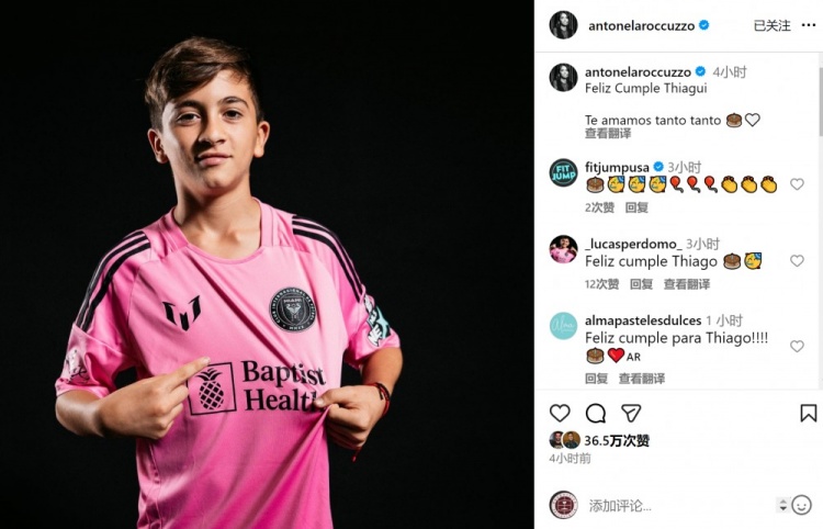 梅西女儿蒂亚戈迎来13岁诞辰,安东内拉社媒晒出蒂亚戈身穿迈阿密外洋球衣的相片,配文:“诞辰简洁,蒂亚戈,咱们超过爱你。”