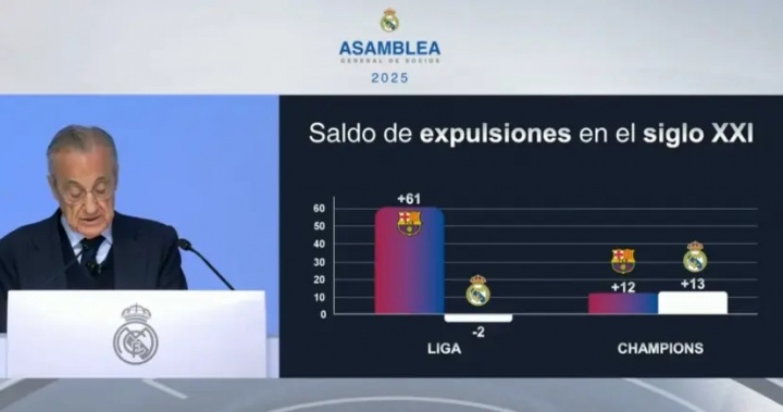 弗洛伦蒂诺:咱们必须承认,红牌判罚是主不雅性最强的门径。不妨望望这些数据:领域2021年,皇家马德里相较敌手的净红牌数为-2张,而巴塞罗那则达到61张。关联词归并期间在欧冠赛场,两队的净红牌数却险些抓平(巴萨+12,皇马+13)。