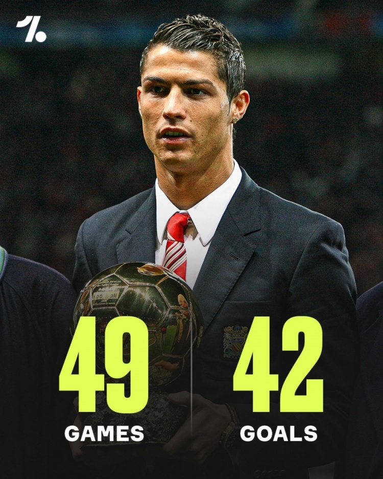 2008年12月2日,遵循于曼联的C罗初度获取金球奖,他在2007-2008赛季出战49场比赛,打进42球,助攻9次,匡助曼联赢得英超冠军和欧冠冠军,最终在金球奖评比中排行首位,梅西、托雷斯分列二三位。