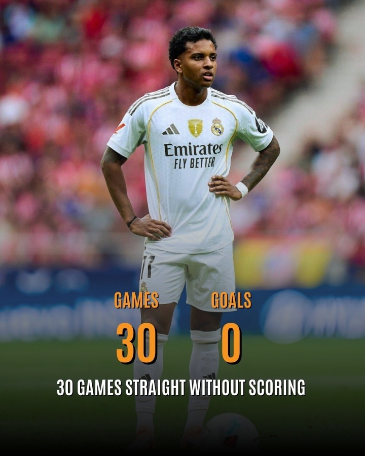 摒弃到对阵赫罗纳的这场比赛,罗德里戈照旧271天没为皇马进球,他前次进球如故在2025年3月5号皇马2-1马竞的欧冠比赛中。联赛层面罗德里戈照旧有315天没进球,前次进球如故在2025年1月20号皇马4-1拉斯帕尔马斯的比赛。