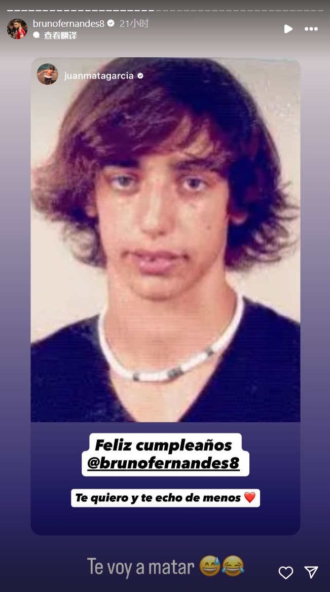09月10日讯 B费渡过31岁诞辰,前队友马塔在社媒晒出了B费早年的一张相片,并写说念:诞辰风景!爱你,念念念你。