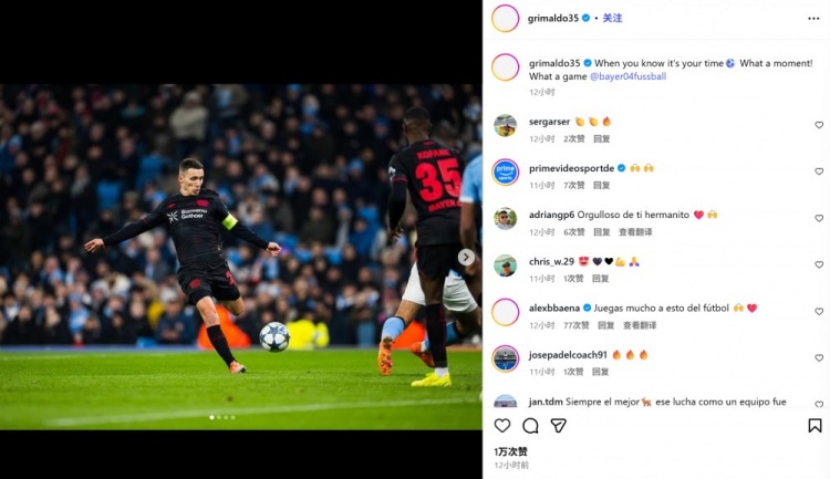 他也在赛后通过社媒晒出了我方的进球一刹照,并配文:“当你意志到你的时机已至⚽️何等精彩的一刹!何等精彩的比赛!”