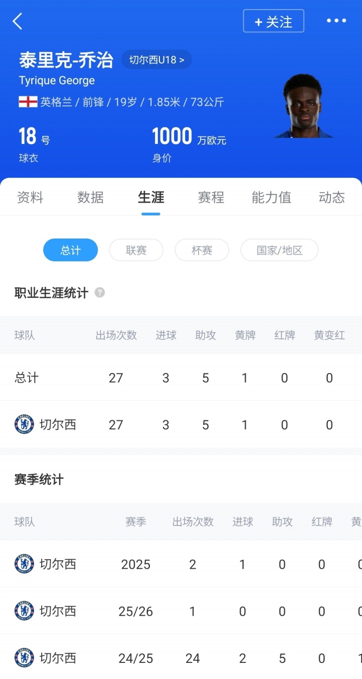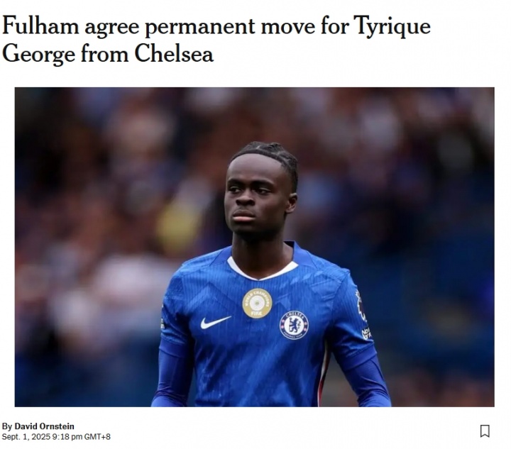DO独家:富勒姆签19岁切尔西小将乔治达条约 转会费2200万镑+二转