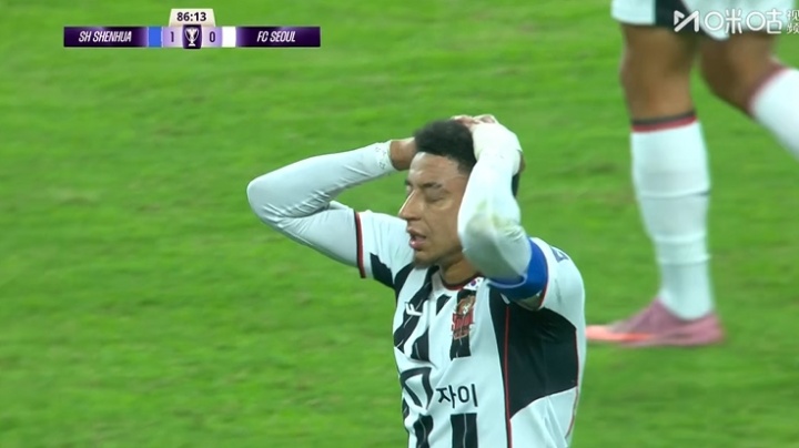 10月22日讯 亚冠精英联赛东亚区第3轮,上海申花vsFC首尔,比赛第87分钟,林加德错失良机,随后仰天浩叹+抱头难以置信。