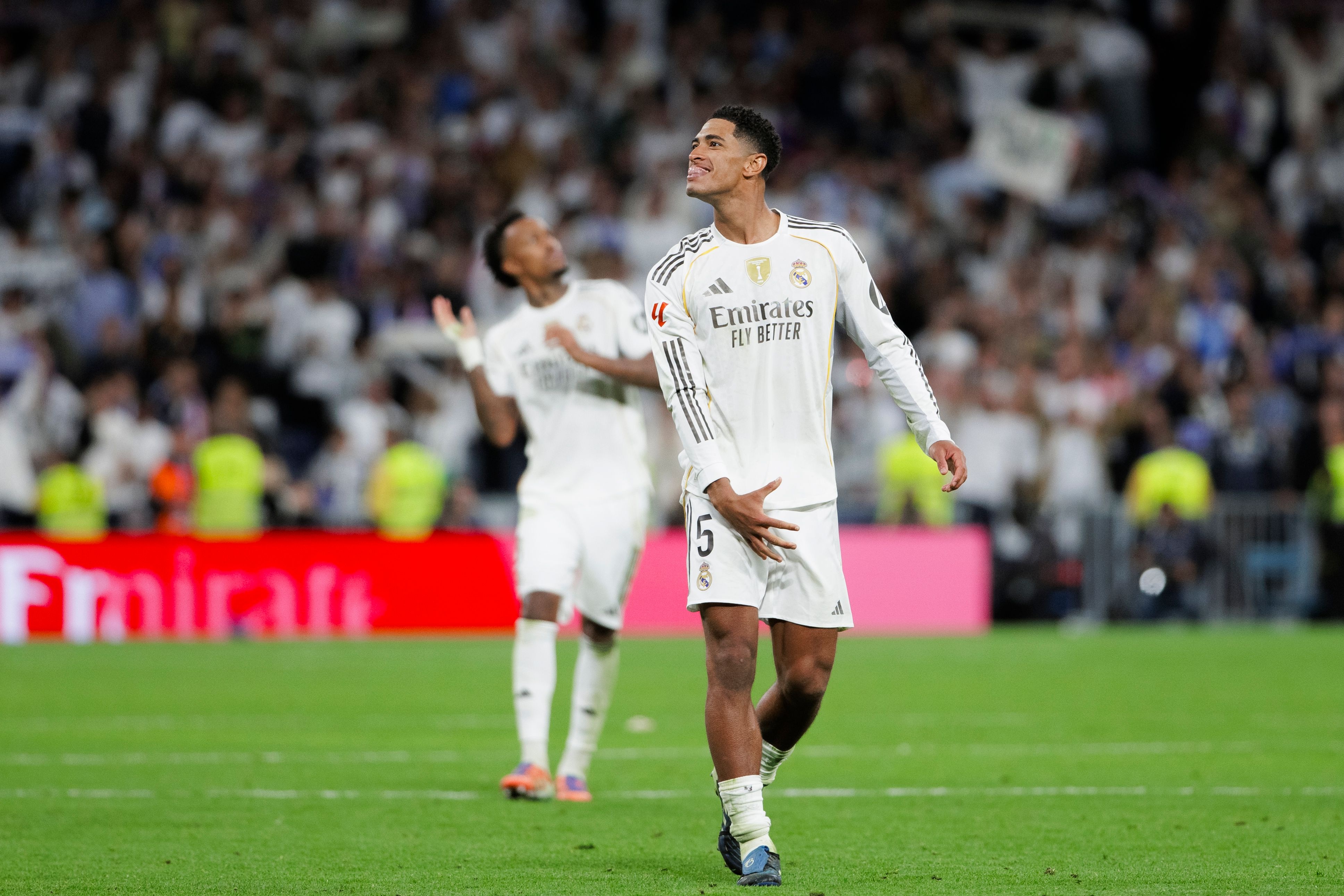 太阳报暗示,在比赛中贝林厄姆被拍到用手虚持在我方的裤裆前,同期吐出了舌头,而他此前曾在2024年欧洲杯上因为一样的手脚被罚。
