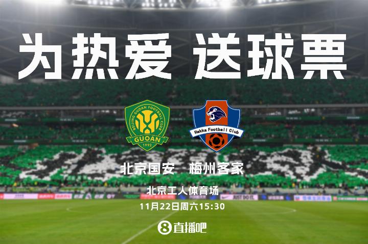 11月22日星期六15:30,中超第30轮,北京国何在工体对阵梅州客家,小吧将选取两位吧友,各奉上本场比赛的门票一张!