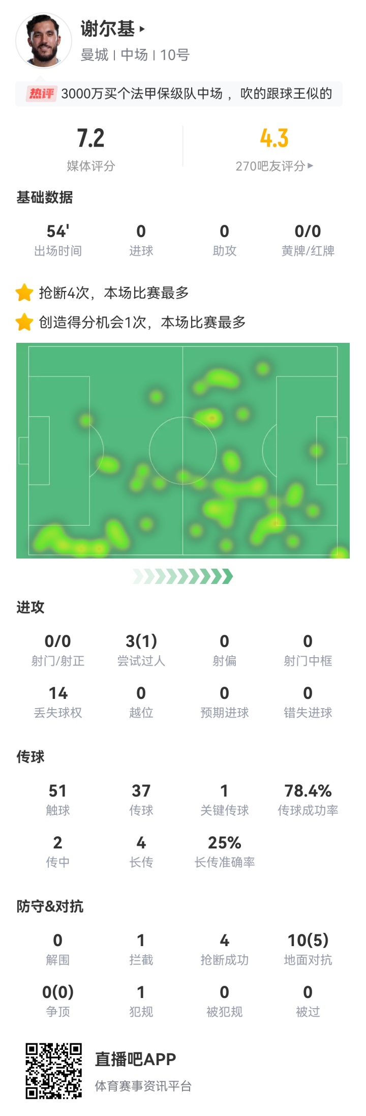 踢热刺首发出场发扬平平!曼晚评谢尔基:仍是更得当超等替补扮装