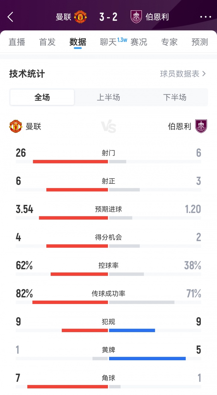 数据碾压却惊魂动魄!曼联狂射26脚,预期进球高达3.54!