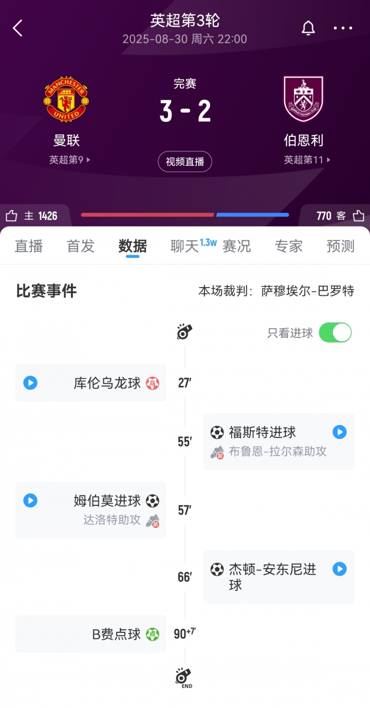 论剧情还得看曼联!曼联两度逾越被升班马追平 B费补时点射救赎!