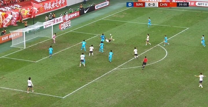已经0-0!第39分钟,拜合拉木禁区内倒钩扣门,皮球偏出底线