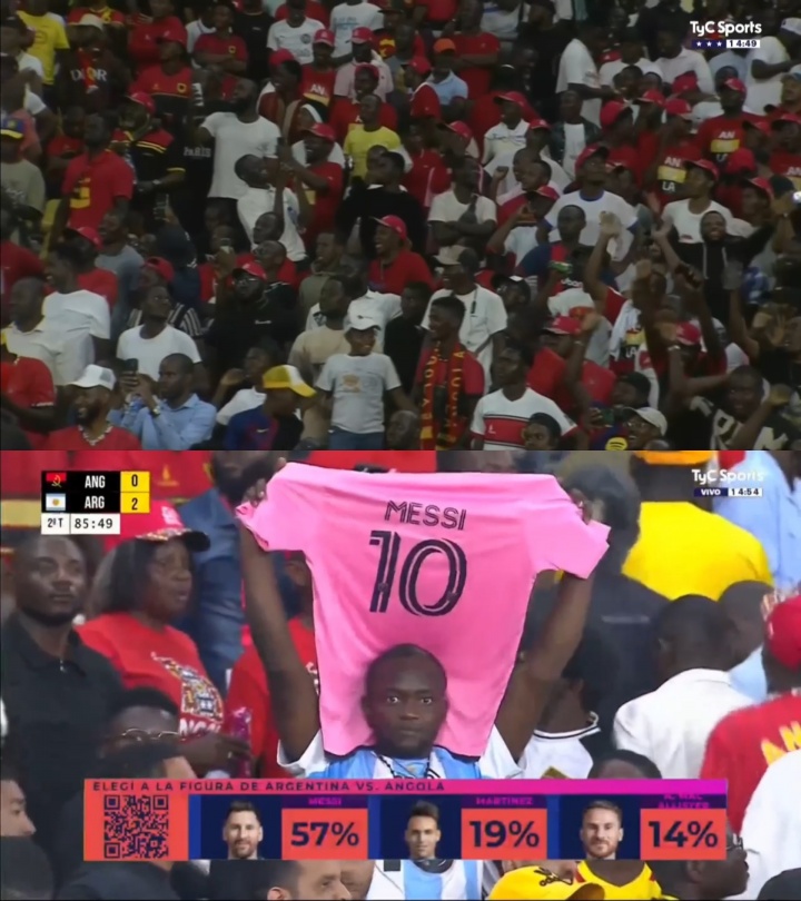 顺服敌手🤩梅西进球后安哥拉球迷跪拜,下场时安哥拉球迷举球衣