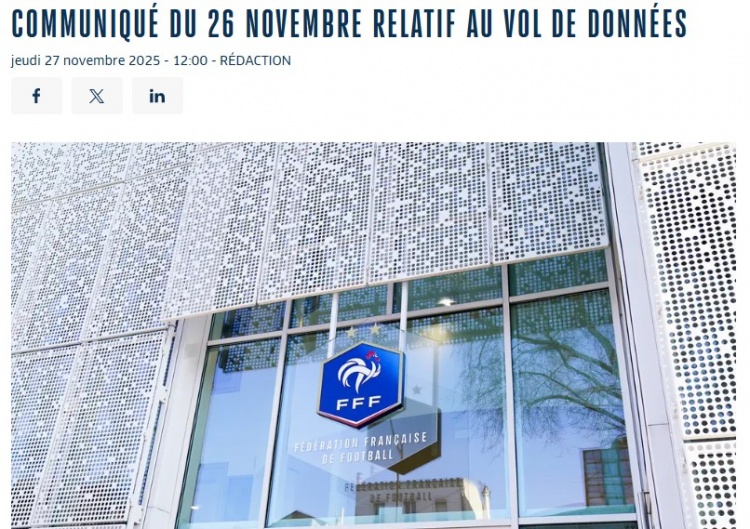 法国足协称其系统遭黑客抨击,用户的姓名、电话等信息被露馅