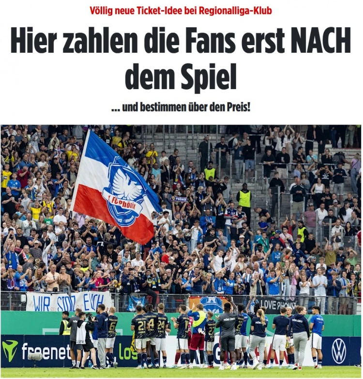11月28日讯 《图片报》报说念,德国地区联赛球队路比克筹备在本年的临了一个主场比赛日进行一次不寻常的行径。在周末对阵汉诺威HSC的比赛时,这家朔方俱乐部的撑捏者们只需要在终场哨响后才支付用度,何况还不错自行决定票价的金额。