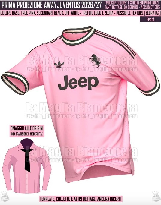 尤文2026-27赛季球衣谍照:主场守旧金边翻领,客场瞩目粉色