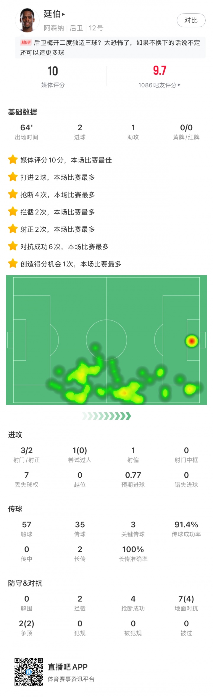 吧友热评:10分的边后卫,能进球能助攻,提神密不通风。若是能保握健康和出场率,改日也许会有一句话:英超最好的边后卫是谁?取决于廷伯打哪边。