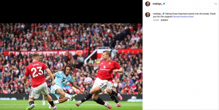 8月31日讯 英超第3轮,曼联主场3比2打败伯恩利,贫乏地获取联赛首胜。德里赫特社媒感谢球迷撑握。