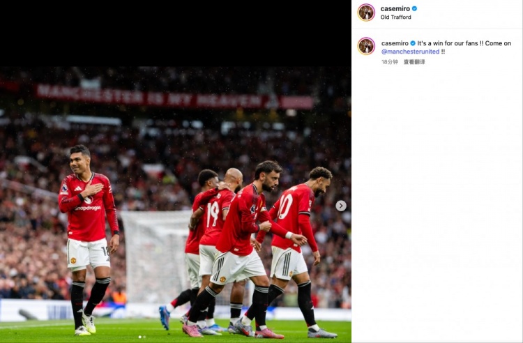 造乌龙首开记载!卡塞米罗社媒:这是献给咱们球迷的告成!加油!