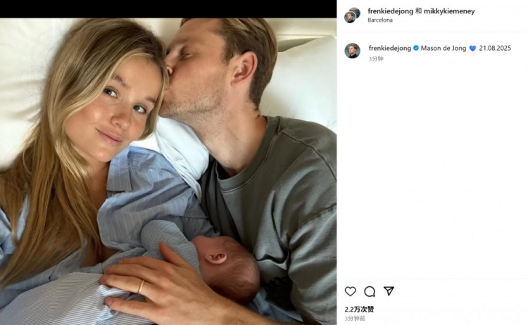 喜得贵子!巴萨中场德容社媒晒一家三口合照:梅森-德容💙