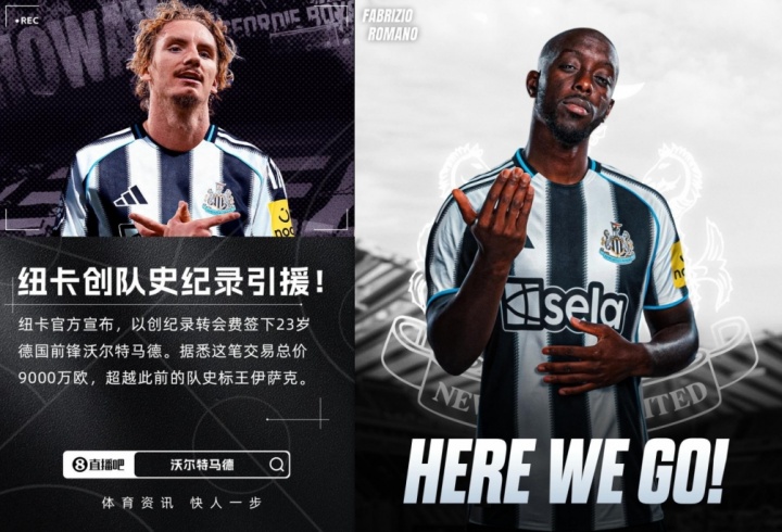 维萨加盟纽卡之后,加上此前喜鹊9000万欧(8500万+500万)官宣的沃尔特马德,他们一共消耗约1.5亿欧买下2位新援,刚好就是离队的伊萨克转会费。