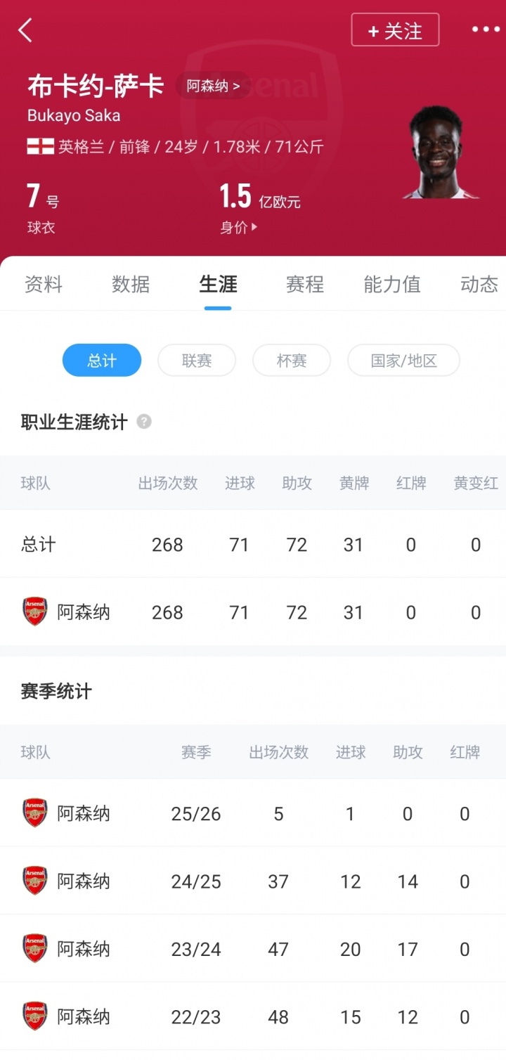 字据capology的数据,萨卡咫尺在阿森纳的周薪为19.5万镑,该公约在2023年5月签下。