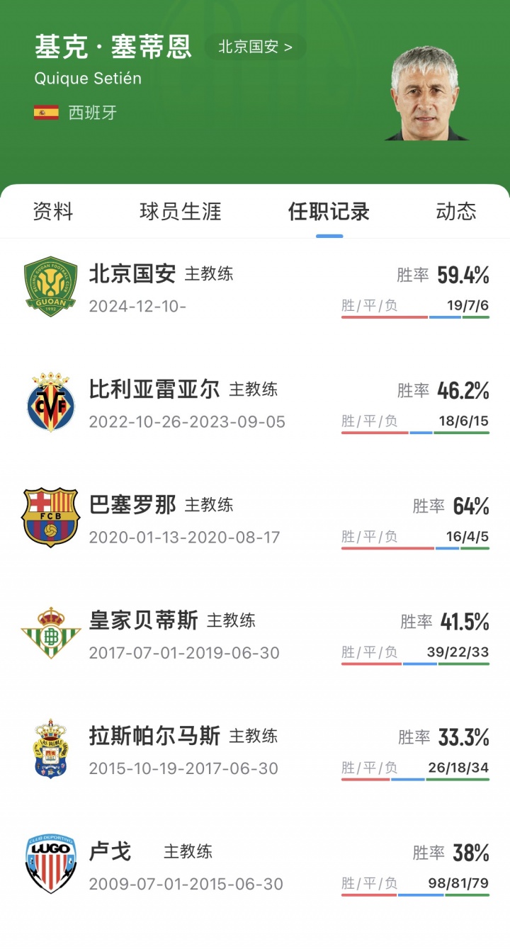 本赛季塞蒂恩抓教北京国安,客战山东泰山0-6惨败,追平抓教生活第二大比分失利(2014年抓教卢戈曾经0-6不敌赫罗纳)。
