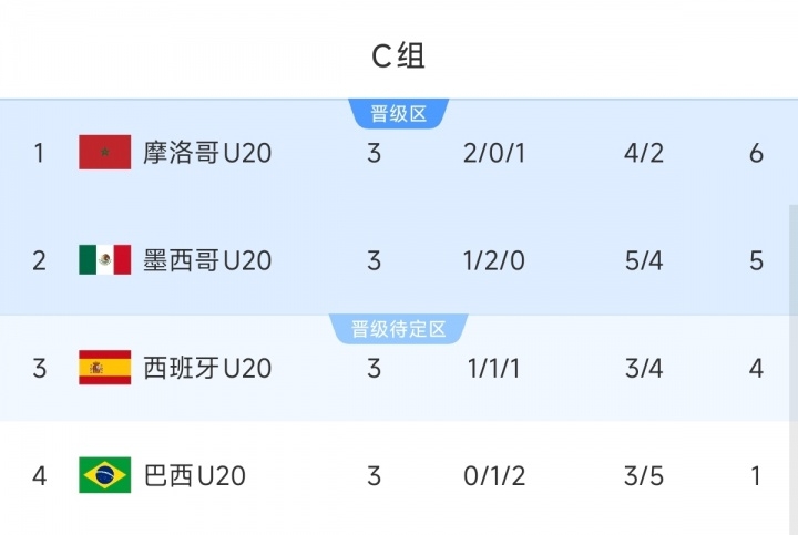 值得一提的是,C组出局的球队是传统朱门巴西U20,世青赛5冠王。如斯看来,C组是当之无愧的耗费之组。
