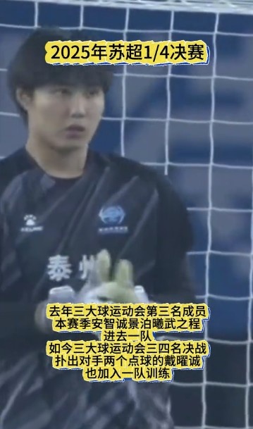 现在,亚泰队门将吴亚轲受伤,王智峰红牌停赛,除了安智诚和邹德海,18岁的年青门将戴曜城也加入亚泰一线队检修。此前,戴曜城代表泰州队建立“苏超”比赛。