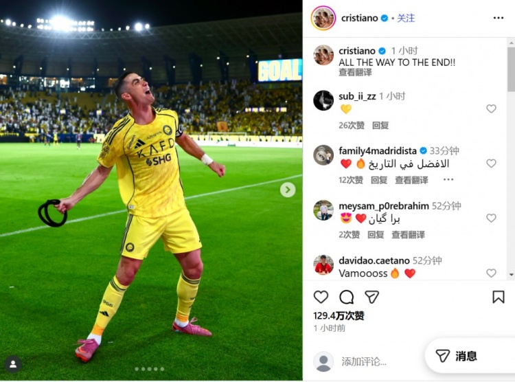 梅开二度助利雅得顺利逆转取胜,C罗晒庆祝照:奋战到底