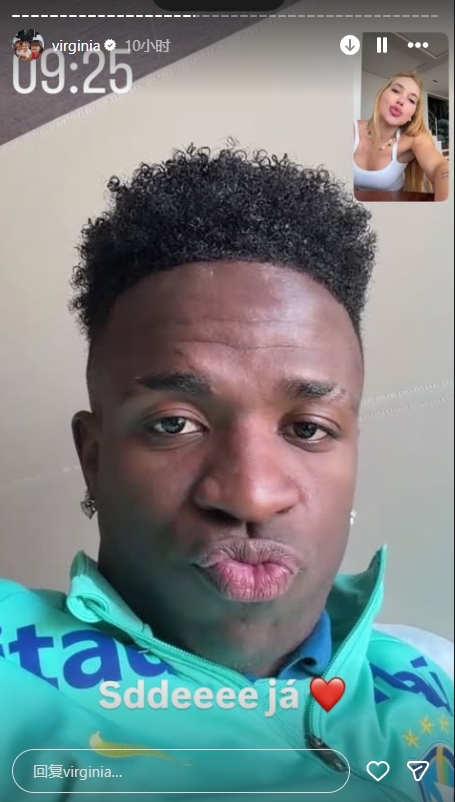 11月18日讯 维尼修斯女友弗吉尼亚更新社媒,晒出与维尼修斯的视频通话画面。