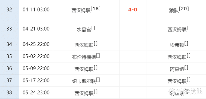 西汉姆虽然本场战胜狼队,但是他们还依然面临着巨大的保级压力。最后6轮赛事 ,他们除了要遇到阿森纳和纽卡斯尔2大强队,其他4场赛事 对手实力也不在他们之下。从目前来看,西汉姆保级的形势,并不比热刺乐观,他们随时会被对手反超,再度跌入降级区。
