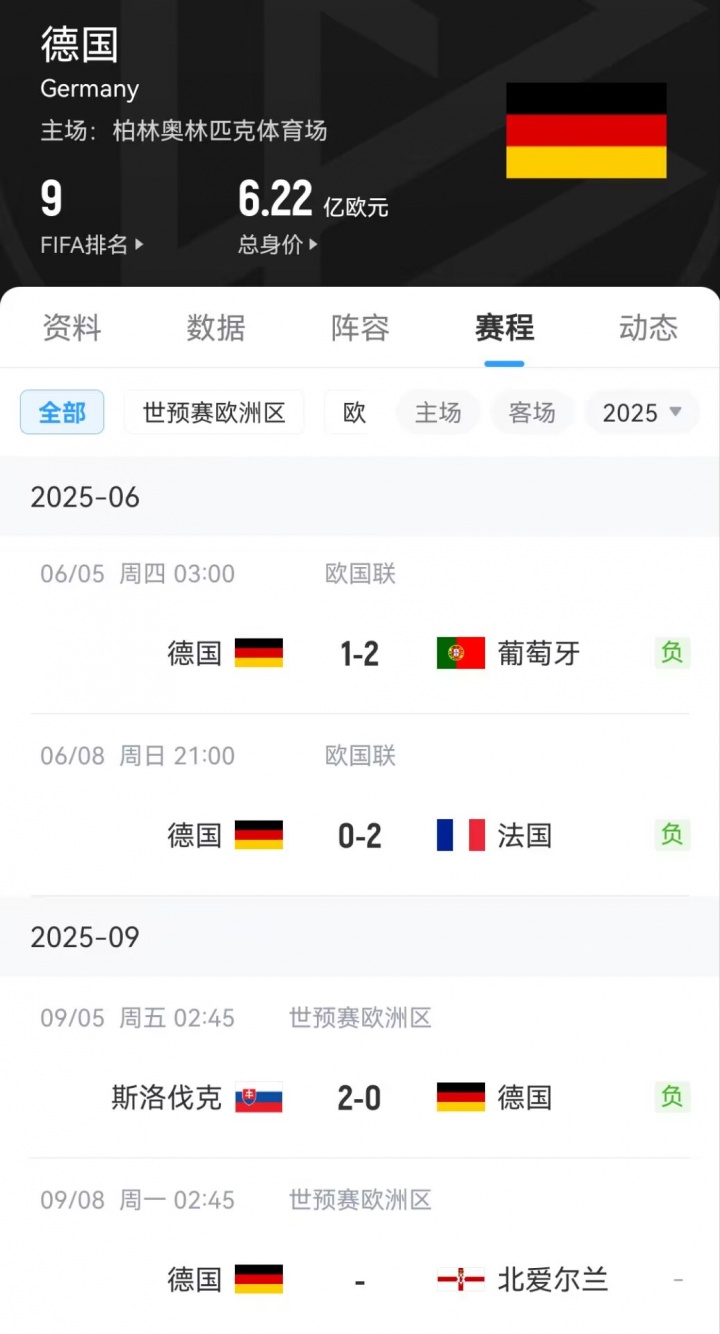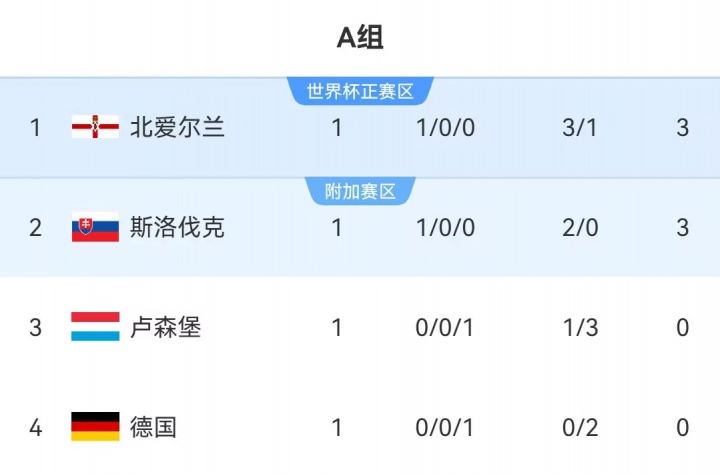世初赛欧洲区小组赛,德国0-2不敌斯洛伐克遭到开门黑,他们下一轮将濒临北爱尔兰队。