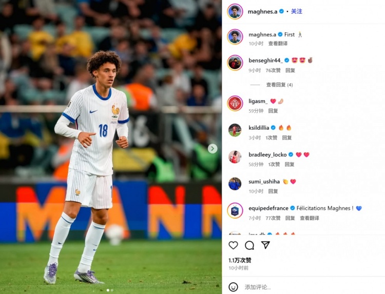摩纳哥又要出货?23岁阿克利乌舍社媒晒照,挂牵完成法国队处子秀